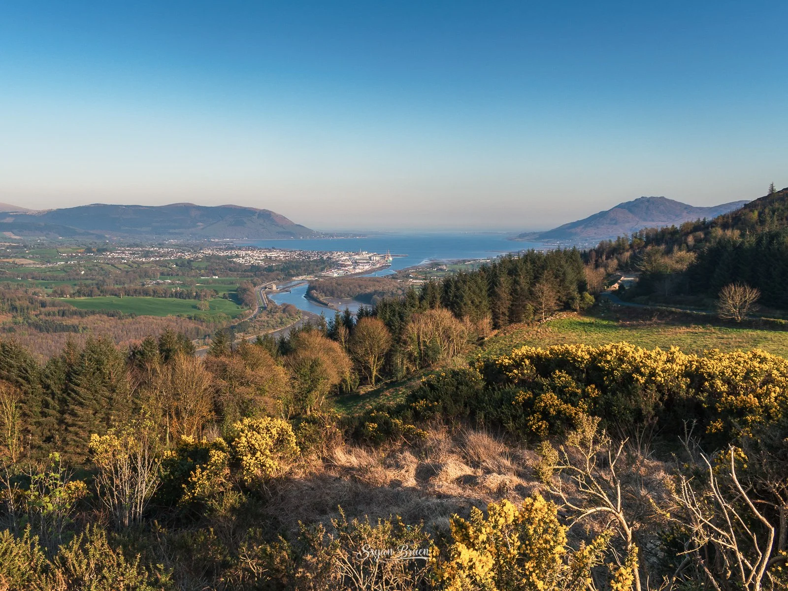 Flagstaff Viewpoint looking down towards Carlingford Lough. Captured using Nikon D7500 with 18-55mm f3.5-5.6 lens and the following settings ISO-100, 1/250th of a second, f/8.0 @ 18mm.