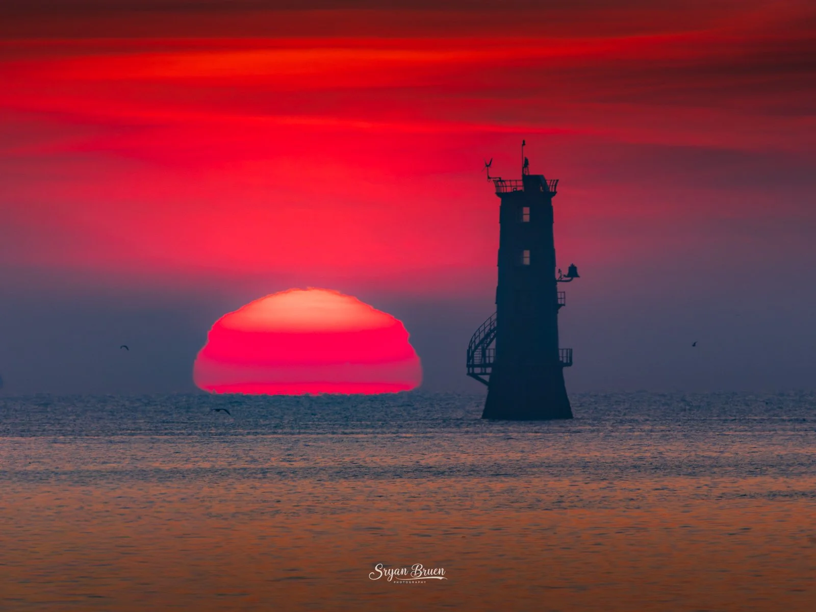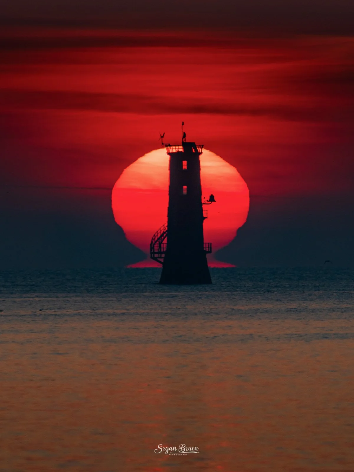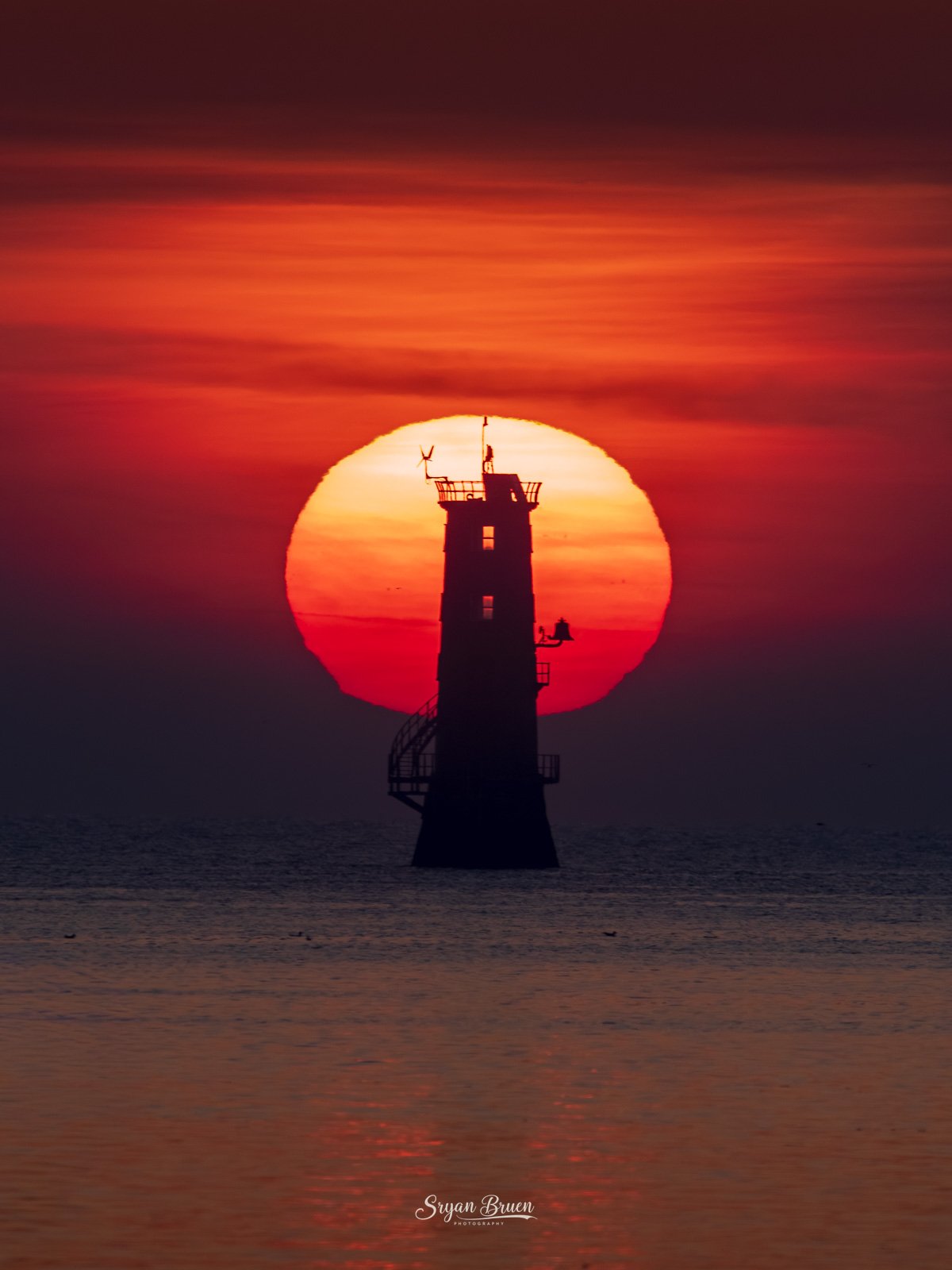 Red sun rising beside North Bull Lighthouse. Captured with a Nikon D7500 using a Sigma 150-600mm Contemporary lens @ 600mm with the following settings ISO-360, 1/1000th of a second, f/6.3.