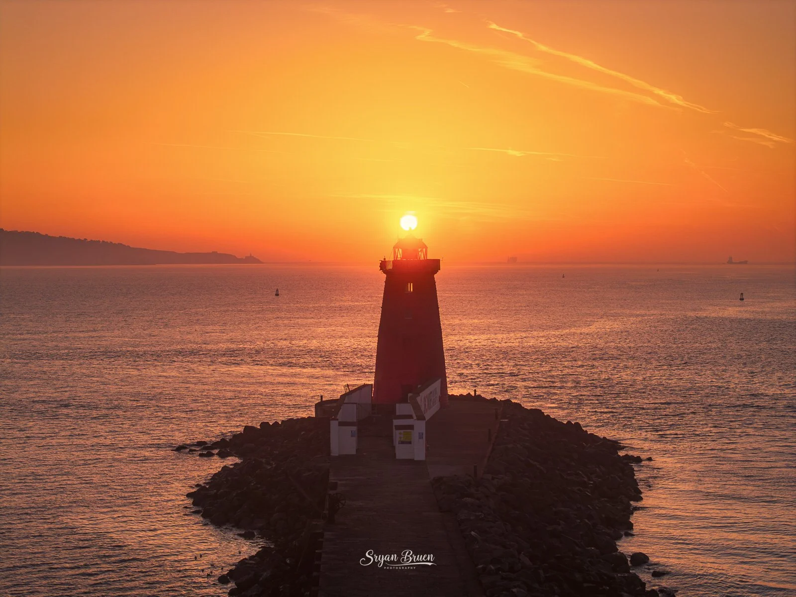 Hazy red sunrise mirage aligned with North Bull Lighthouse from the start of the Great South Wall. Captured using a Nikon D7500 with a Sigma 150-600mm Contemporary lens and the following settings ISO-200, 1/1600th of a second, f/6.3 @ 600mm.