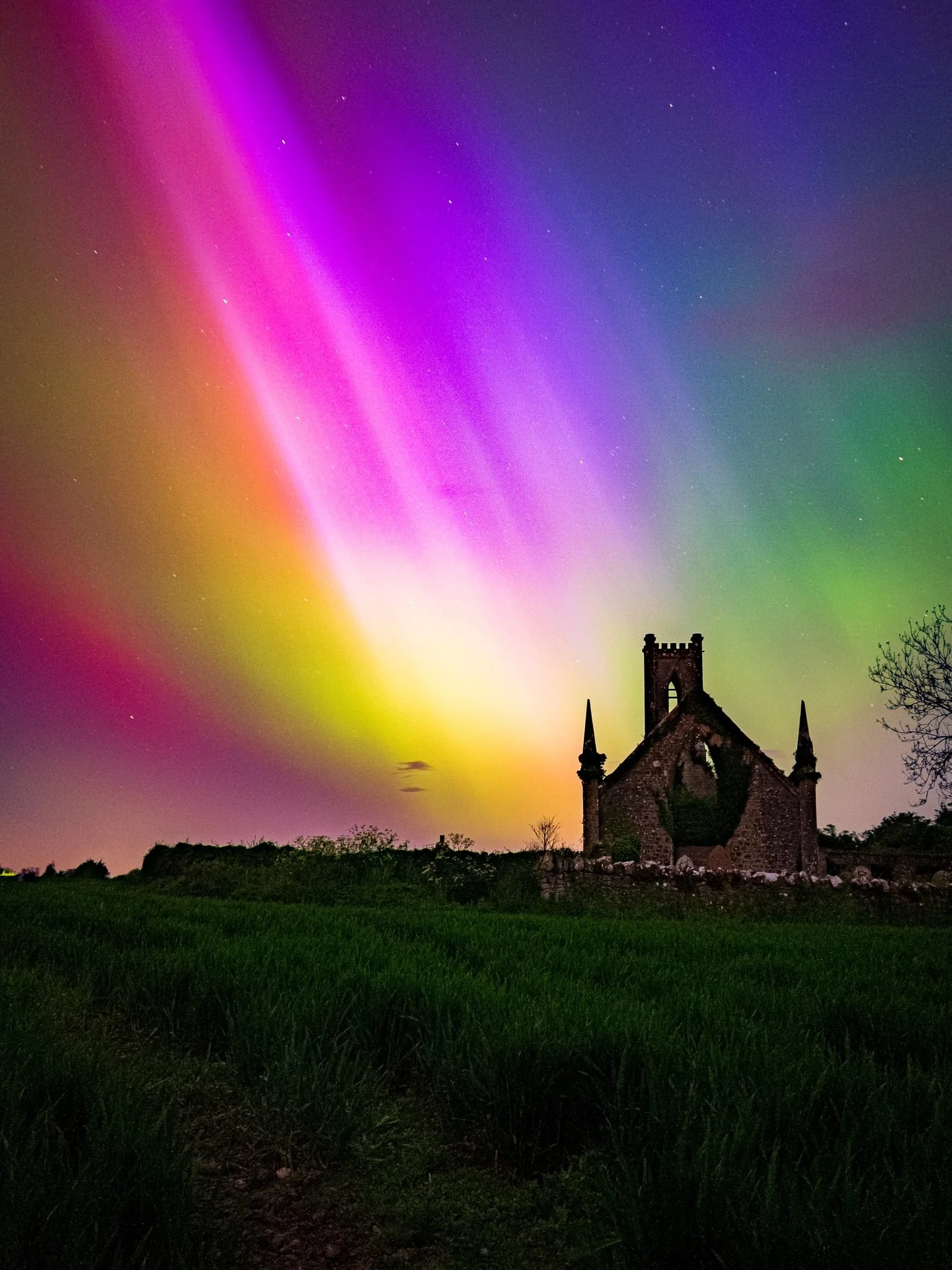 I brought along two friends for the ride in the car as it’s not something they’d want to miss and they don’t have access to a car. I planned to go to Ballynafagh Church in Kildare. This is a composition I’ve wanted to get for a while since many have done it and it looked like a perfect location for aurora. I also wanted to do Maiden Tower in Mornington, Meath so I was stumped on which one to go for. I left my Instagram followers to vote on which one to go to. Ballynafagh Church unanimously won the vote by a significant difference. I think this was the right idea as Ballynafagh had less cloud cover and was overall a better location in my opinion though I will still be doing Mornington for a future aurora display.