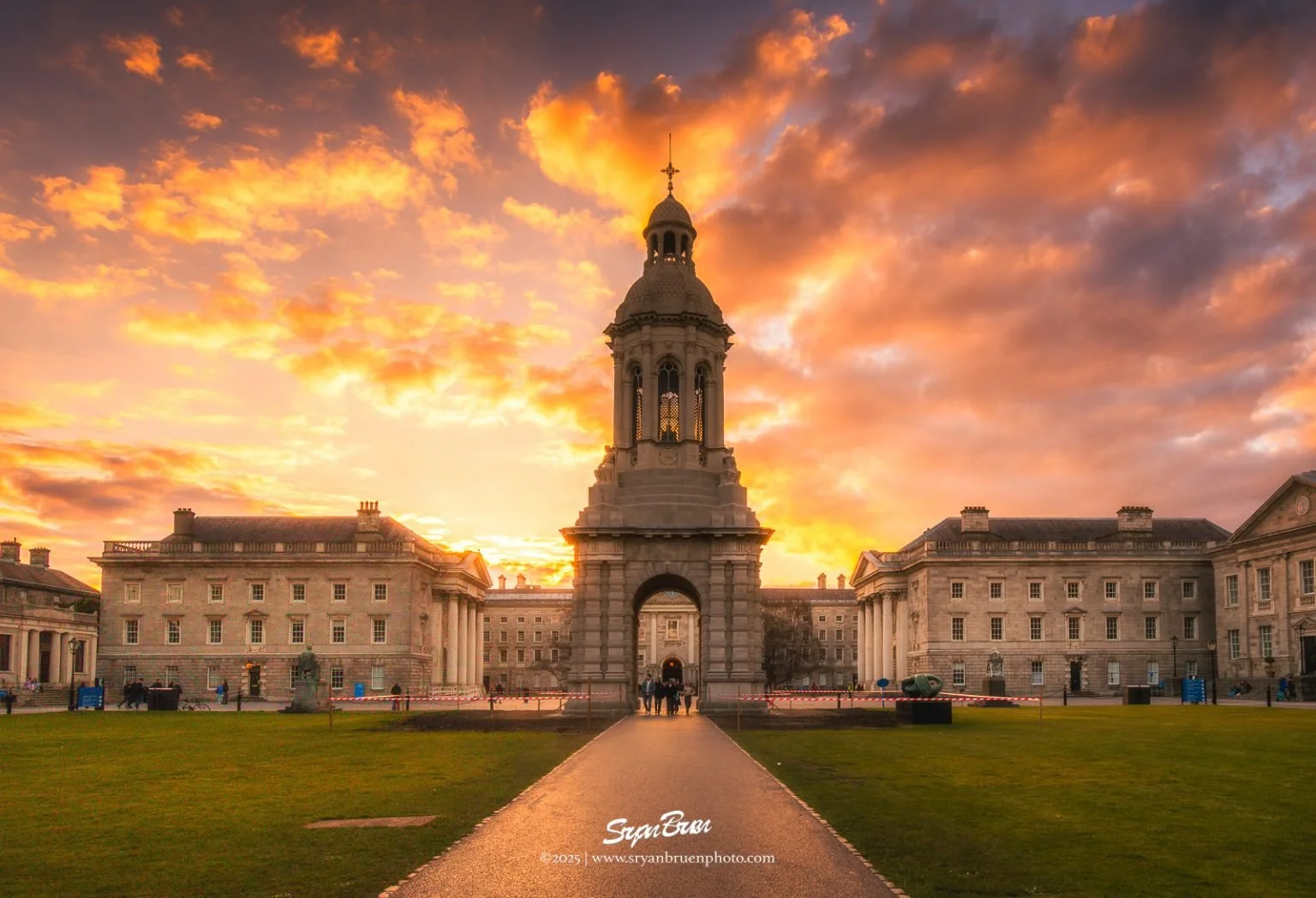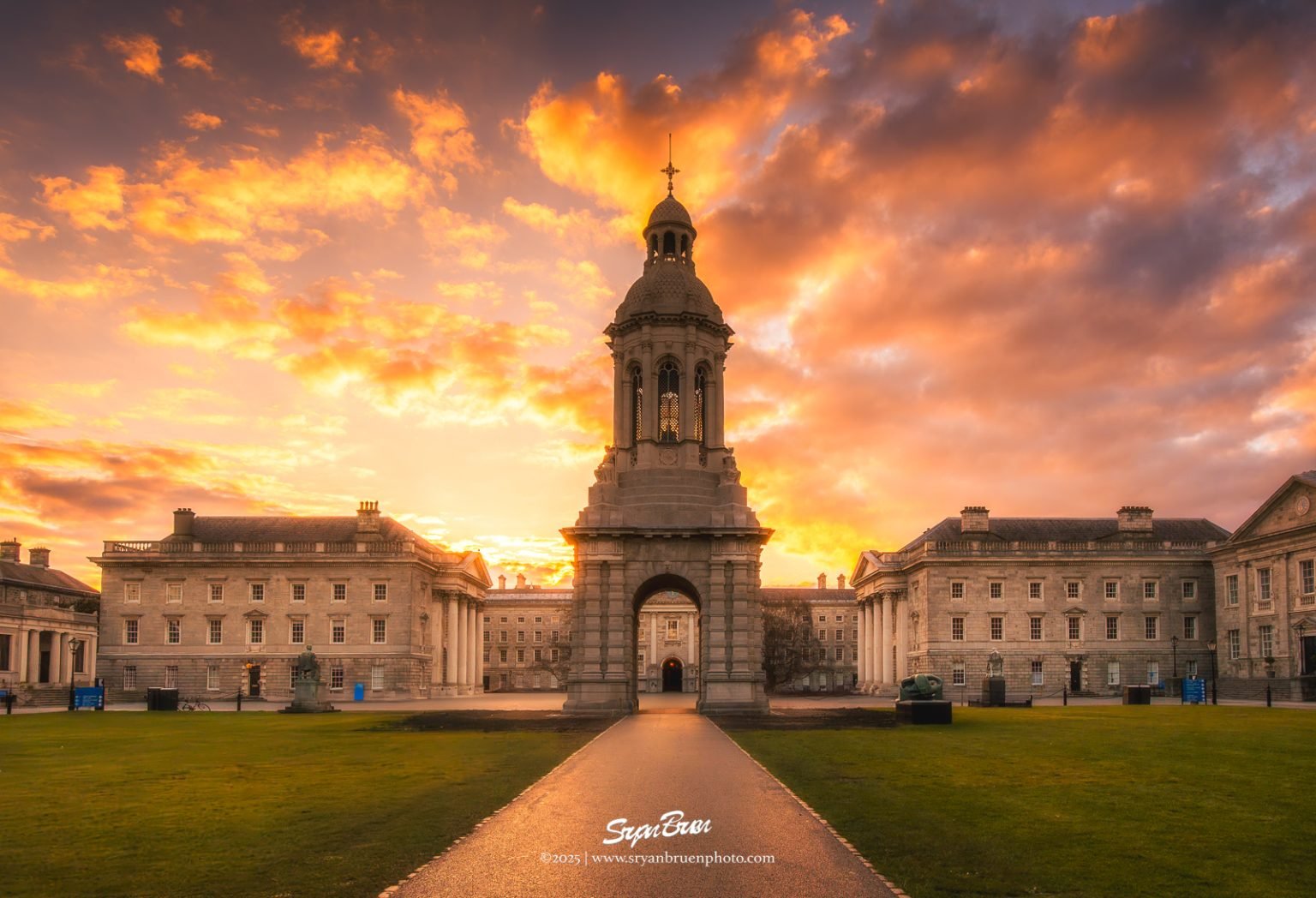 I attempted to capture the Trinity College campus and Campanile building with a sunset sky overhead of fair cloud that would light up. A clear sky would not work and would look very boring whilst a grey featureless sky would not work either with the architecture. I was relying on some kind of golden glow. It didn’t need to be anything special and indeed this sunset was nothing special with a lot of cloud and a blocked horizon which usually means a poor sunset.