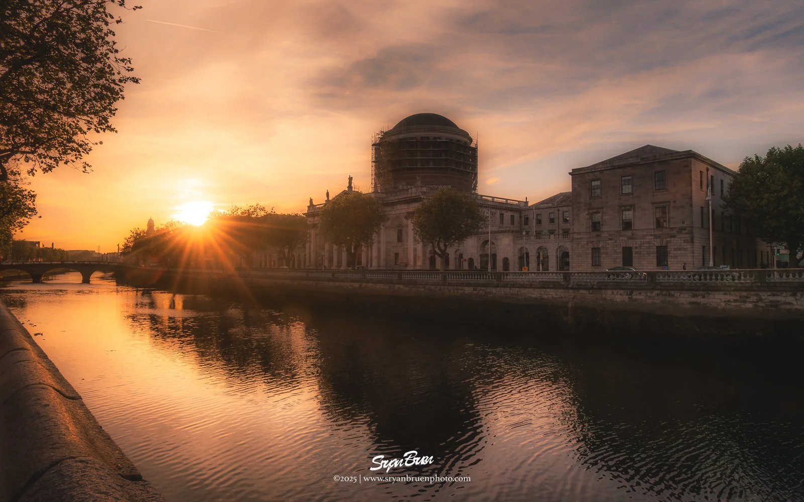 A beautiful May evening looked prime for lovely colours in the city centre. At first I checked the Four Courts and the Ha’penny Bridge as they were on the bucket list to getting a perfect sunset of fiery colours and reflections in the Liffey. There wasn’t much to be had at the Ha’penny, the sky was a little too clear and reflections were minimal. I got a shot of the Four Courts with the sun beside them but the lack of reflections and the scaffolding on the dome weren’t what I had in mind for my bucket shot. Still nice to have I guess and I edited the photo to make it look almost old fashioned with a sepia-ish look which I think suits this part of the city.