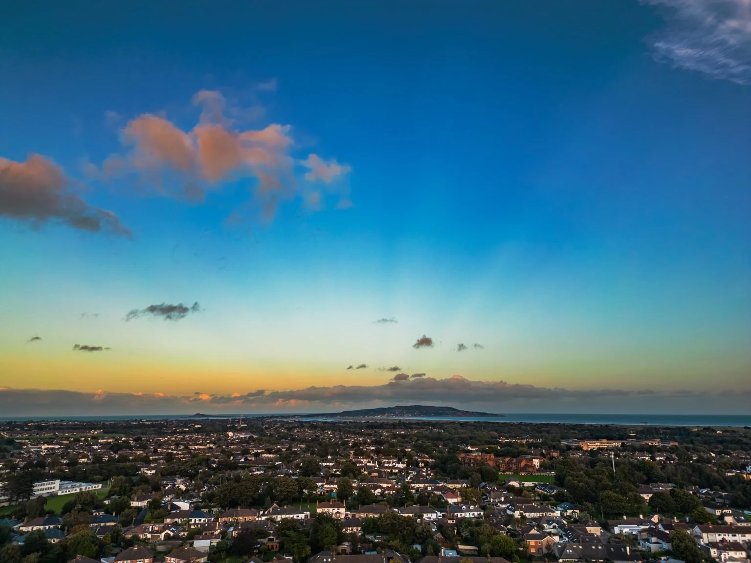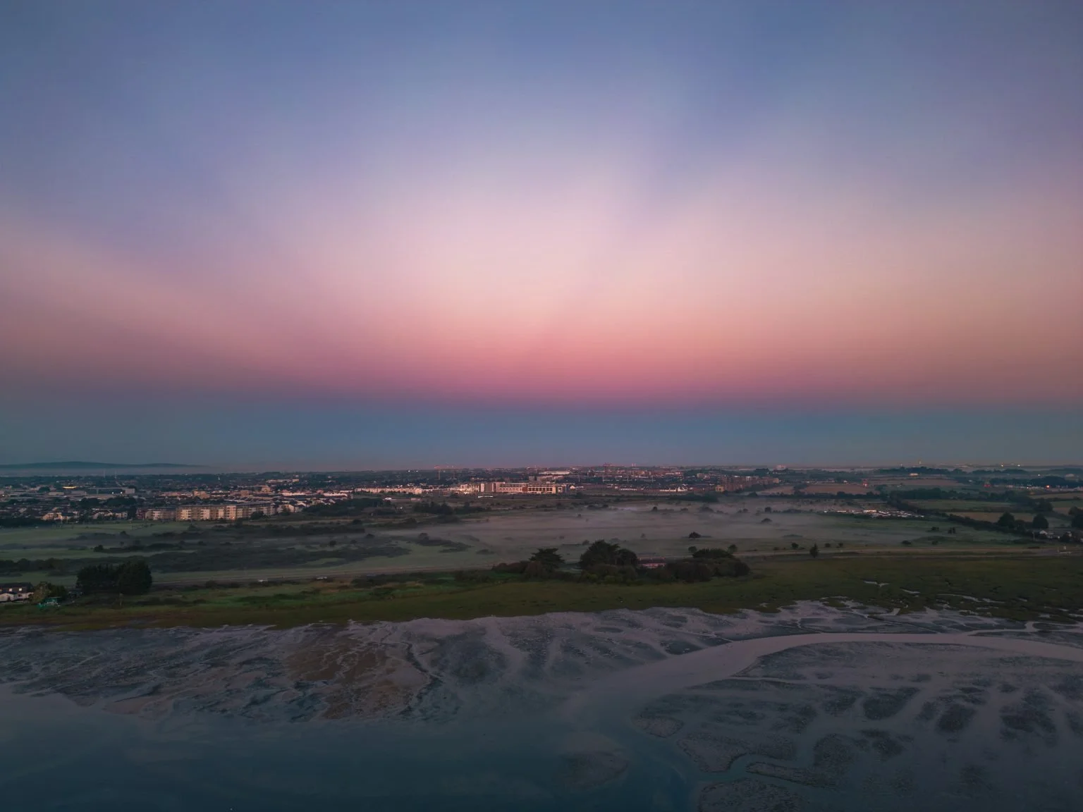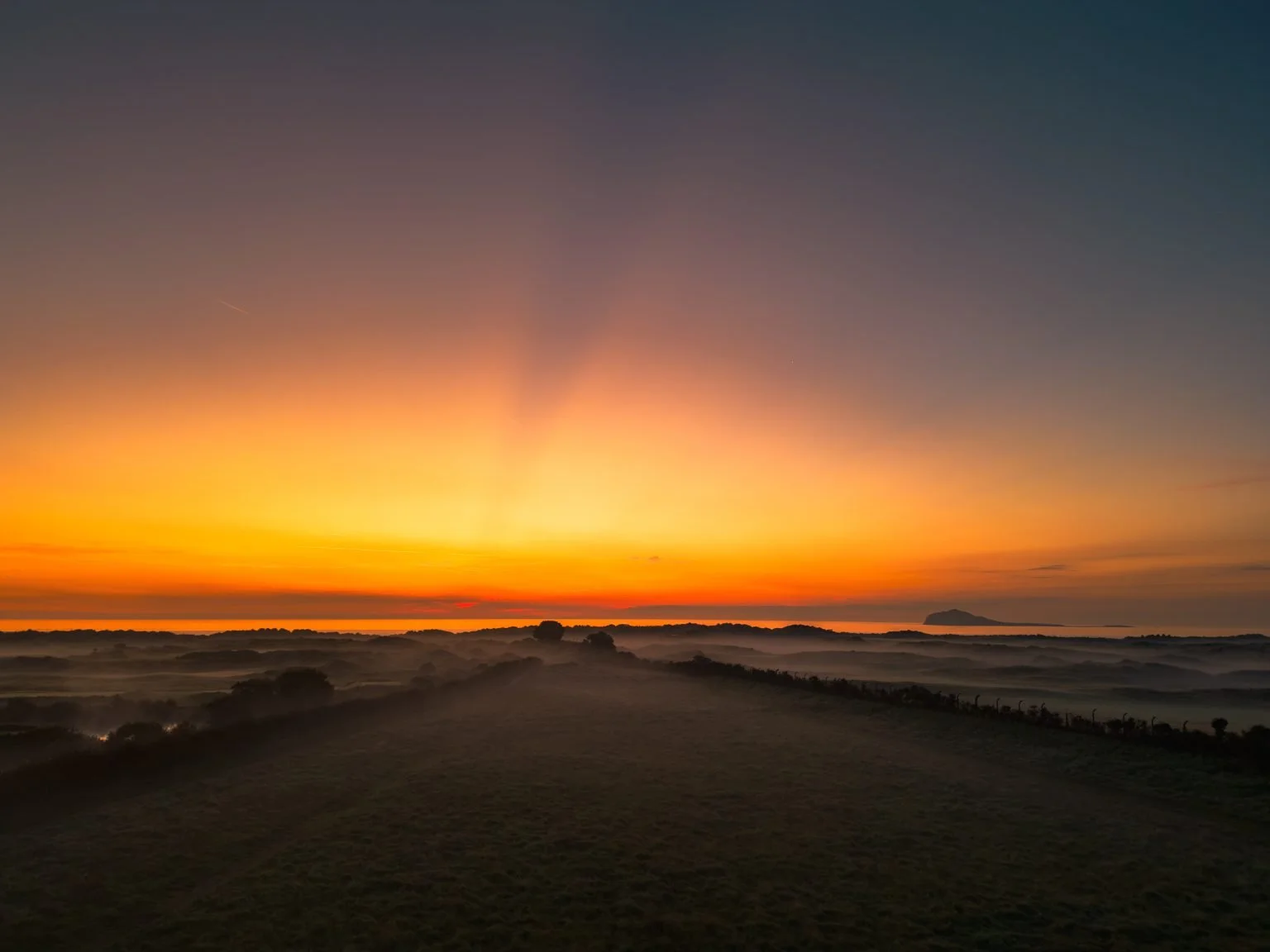 Another stunner of a day beckons on the 4th with a misty sunrise at the Portmarnock Golf Links. I stupidly forgot to put back in my DSLR battery after charging from the previous day. At least I had the drone to capture some low lying shots over the fields and bay. There were some great anticrepscular rays in the opposite direction of the sunrise over Baldoyle and surroundings and crepuscular rays too before the sun started to rise.