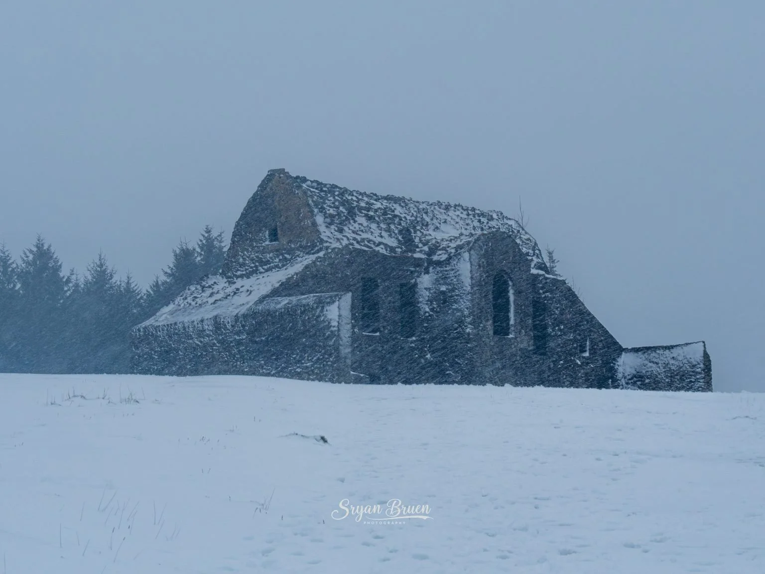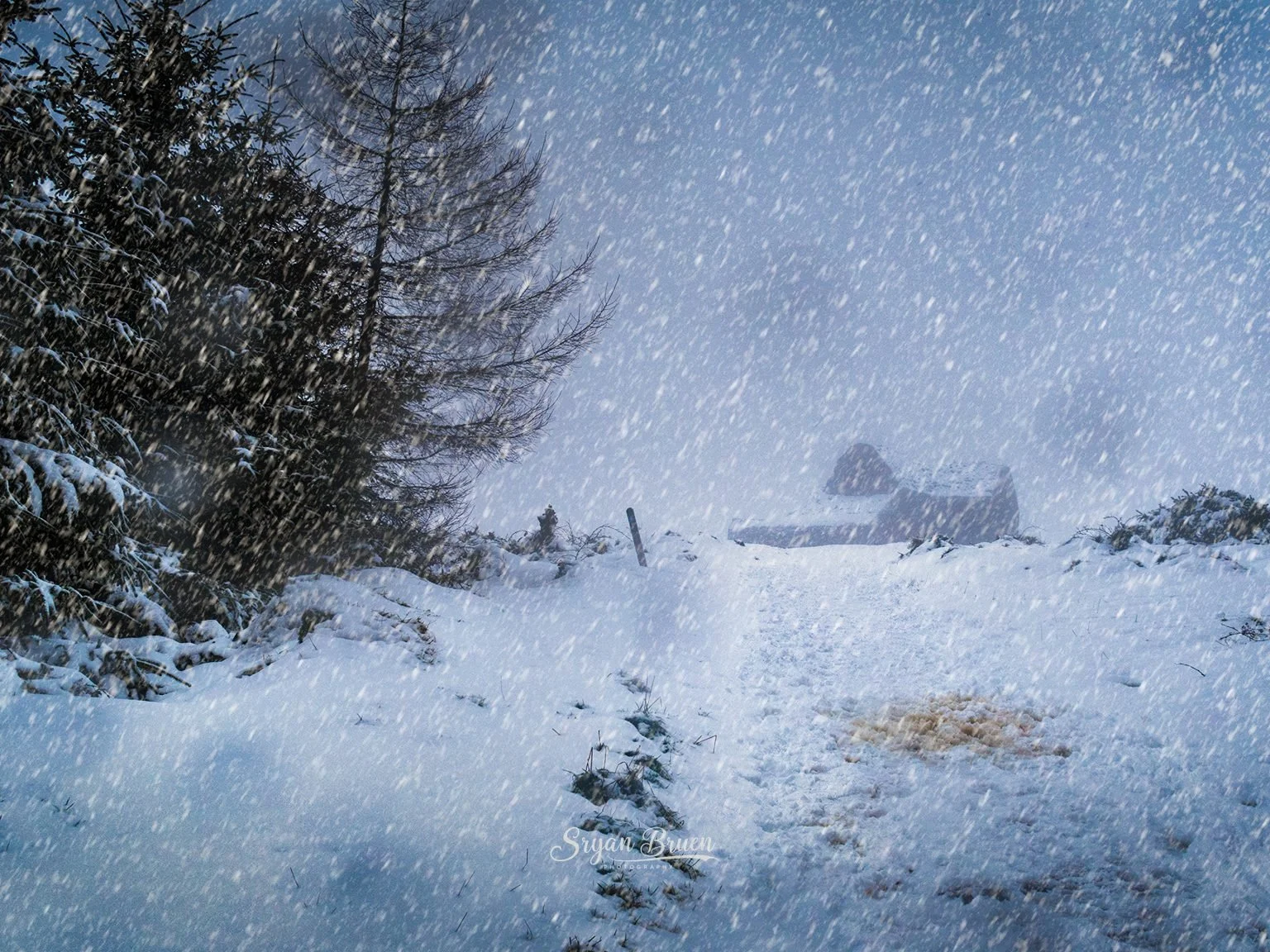 After I got back to the car, conditions were good enough to drive without much bother. The first day of snow falling unless it’s proper thick isn’t often much of a worry anyway as it has yet to freeze over. That’s when it truly becomes anxiety inducing. The car park was starting to fill up quick with snow tourists and it was time to get out. I imagined a snowy Ballycorus Lead Mines would be cool to capture and at this point I did not know where I would have to park to be able to get there so relied on Google Maps which brought me to a tiny lane way with a no parking sign. Not that it matters as the snow level was too high for Ballycorus where it was all rain so had to forfeit this plan.