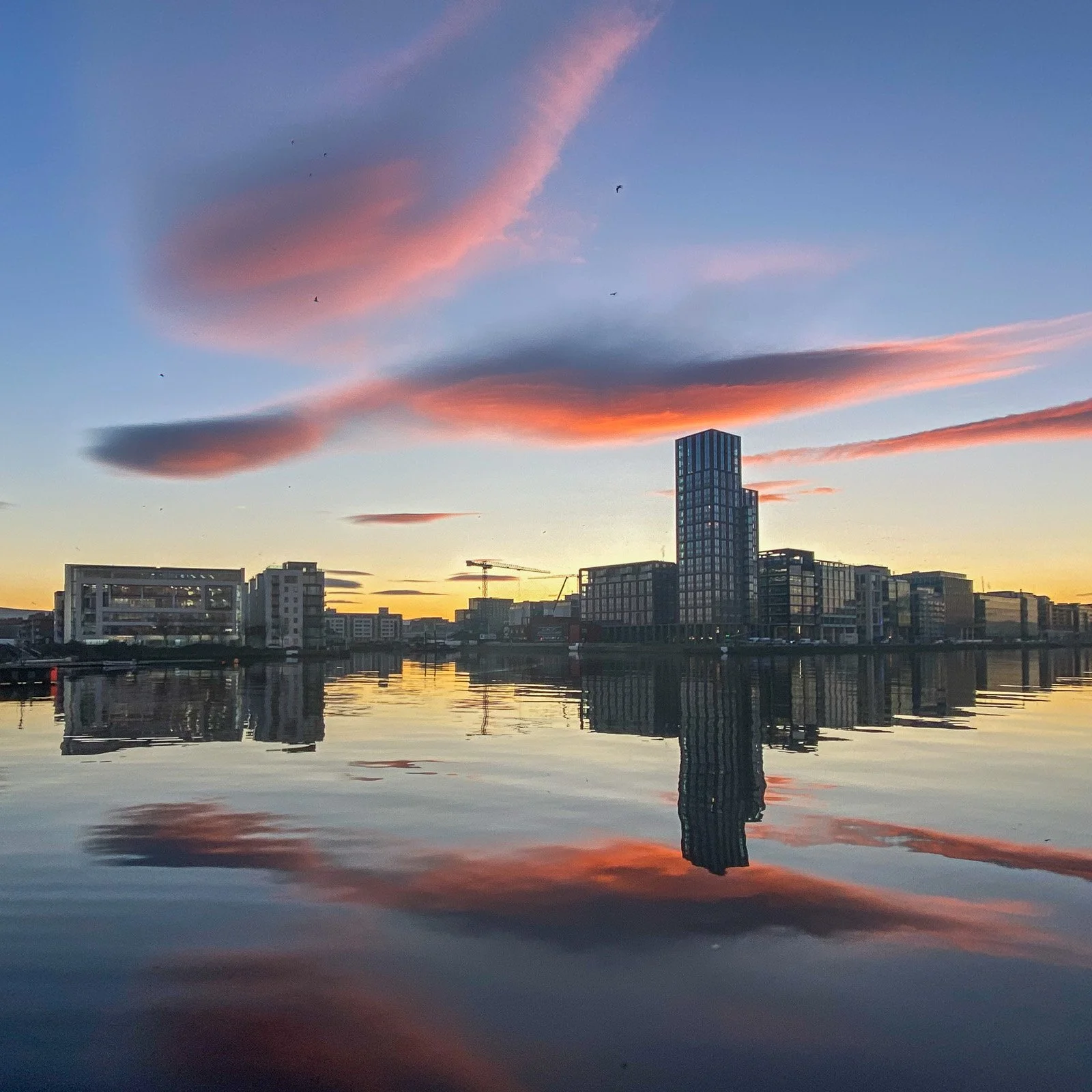 Clouds formed over or near mountains when moist air flows over them creating waves in the sky. The weather pattern required for their formation varies depending on the geography of the location. In Dublin, they tend to happen when the wind direction is southerly or southwesterly.
